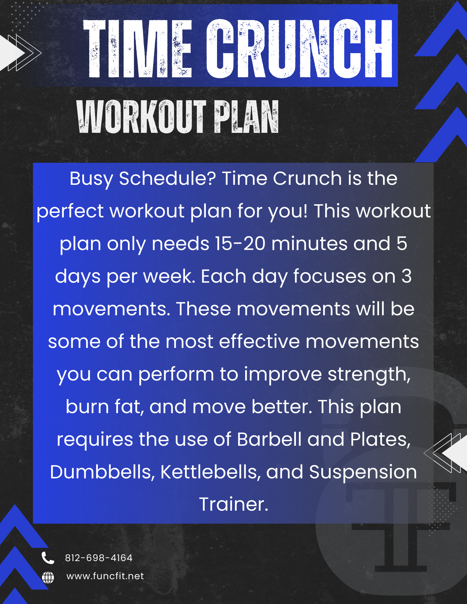 15 minutes each day is all you need to start seeing improvements in your physical fitness with this 9 week program! This program requires basic equipment such as barbell and plates, dumbbells, kettlebells, weight sled, and suspension trainer.